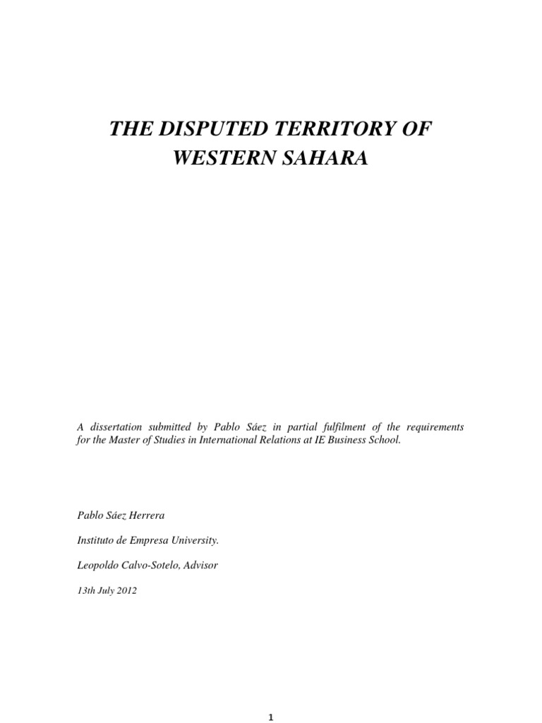 Contents Introduction Chapter One: Historical and Political Background Geographical Situation. Society in Western Sahara Pre-Colonial Period The Spanish Sahara War in the Desert United Nations Mediation Recent developments