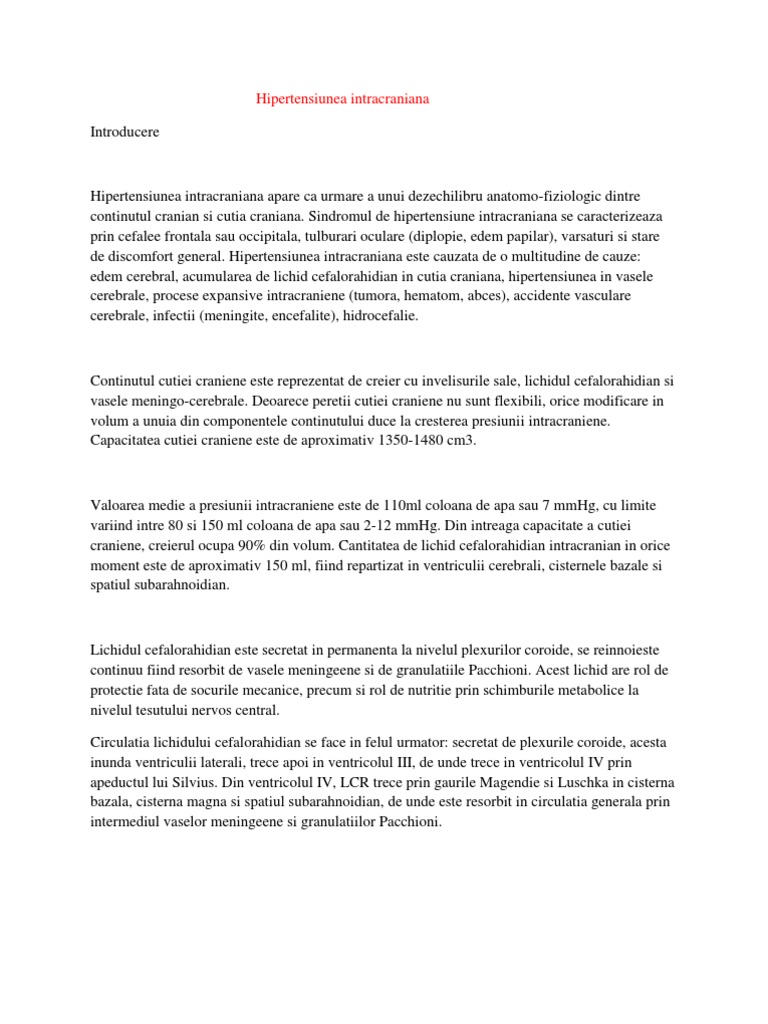 Hipertensiunea intracraniana Introducere