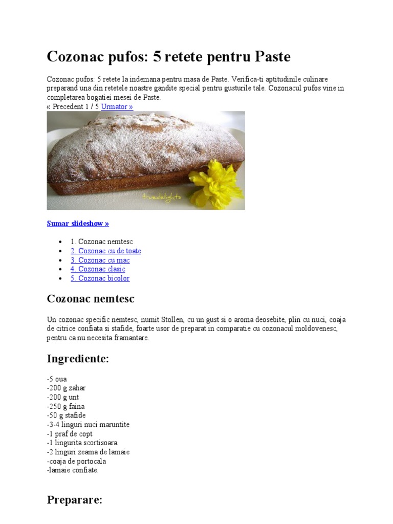 1. Cozonac nemtesc 2. Cozonac cu de toate 3. Cozonac cu mac 4. Cozonac clasic 5. Cozonac bicolor