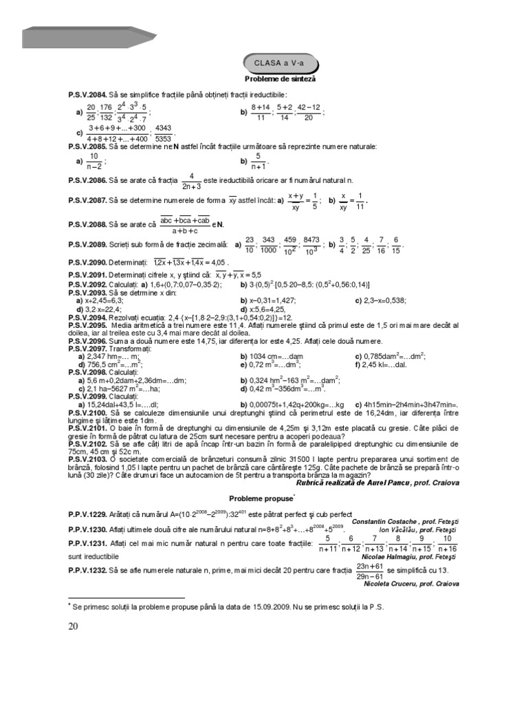 Se primesc soluii la probleme propuse pn la data de 15.09. 2009. Nu se primesc soluii la P.S.