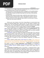 George Calinescu (1899 1965), om de mare eruditie, personalitate plurivalenta, se manifesta deplin in diverse domenii ale culture si literaturii noastre: critic si istoric literar, eseist si esthetician, prozator si poet, dramaturg si [Link] Otiliei (1938) (al doilea roman dupa Cartea Nuntii) constituie o materializare a teoriei balzaciene despre menirea neamului de a oferi o fresca obiectiva a societatii in care traieste autorul, dar si o ilustrare a conceptiei sale despre curentele literare clasicism, romantism, realism (Nu exista in realitate un fenomen artistic pur clasic ori romantic... Clasicism, Romantism sunt doua tipuri ideale inexistente in stare genuina, reprabile numai la analiza in retorta). George Calinescu e autorul e autorul primelor romane citadine, de tip clasic, iar prin Enigma Otiliei el aduce o viziune originala, moderna. Tema romanului e viata burgheziei bucurestene de la inceputul sec. al XX lea, societate aflata sub puterea distrugatoare a banului (Zeul la care se inchina toti e <<banul>>). Intreaga actiune e concentrata in jurul averii lui Costace Giurgiuveanu, un batran avar, si sunt implicate multe personaje interesate mai mult sau mai putin de mostenirea acestei averi. Titlul romanului a fost ales de scriitor tot in maniera balzaciana (Parintii Otiliei), pentru ca sriitorul urmareste in roman degradarea relatiilor din interiorul familiei care conduce implicit la degaradarea intregii societati (de ex. avaritia il impiedica pe mos Costache sa-si infieze pupila, pe Otilia Marculescu, fiica fostei sale sotii decedate de la care mostenise o imensa avere). Relatia parinti-copii se extinde si la alte categorii de personaje interesate intr-un fel sau altul de viata si viitorul Otiliei. La sugestia editorului autorul schimba titlul romanului in Enigma Otiliei avand in vedere firea contradictorie a domnisoarei care oscileza intre nevinovatia, farmecul natural al varstei, si seriozitatea, maturitatea femeii care judeca la rece si explica imposibilitatea mariajului dintre ea si Felix in ciuda afectiunii pe care i-o purta. Romanul, alcatuit din 20 de capitole, este construit pe mai multe planuri narative, care urmaresc destinul unor personaje, prin acumularea detaliilor : destinul Otiliei, al lui Felix, al membrilor clanului Tulea, al lui Stanica. Actiunea romanului nu se desfasoara pe un singur fir epic ci se structureaza pe doua planuri: a) viata burgheziei la inceputul sec. al XX lea; b) drumul formarii unui tanar intelectual. Primul plan ilustreaza istoria mosteniri, care dezvolta conflicte intre cele doua
