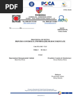 VI)Controlul documentelor si al datelor Piesa Stanta debitare are la baza contractului de productie incheiat documentul primit de la beneficiar, Stanta debitare [Link]. Documentul Stanta debitare [Link] se afla inregistrat la firma furnizoare,SC INCORP SA,iar accesul la asta se face cu aprobarea Directorului General al firmei furnizoare. Contractul incheiat intre ambele parti se afla inregistrat la ambele firme,iar accesul la acesta se face cu aprobarea directorilor generali ai firmelor in cauza. Documentele ce definesc baza tehnica si de proiectare a piesei se afla la departamentul tehnic al firmei furnizoare si la departamentul de proiectare, iar accesul la acestea se face cu aprobarea Directorului General al SC INCORP SA. Pentru implementarea sistemului de management al calitatii in procesul de productie al piesei se folosesc Manualul de calitate SC INCORP SA insotit de procedurile specifice si prezentul Plan al [Link] au la baza standarde de calitate aflate in vigoare,iar accesul la ele se face cu aprobarea Responsabilului Calitate al firmei SA INCORP SA. +dk imi da clientul procedura noua VII)Aprovizonare Pentru piesa Stanta debitare este achizitionata initial cantitatea de 20 tone OL42 (STAS OTELURI)de la firma SC MECHEL SA sub forma de [Link] vor fi insotite de certificat de calitate . De asemenea vor fi achizitionate mai multe seturi de SDV-uri de la firma SC IMARC SA,ce de asemenea vor fi insotite de certificate de calitate. Aprovizionarea este in detaliu descrisa in procedura anexata planului de fata, PROCEDURA DE APROVIZIONARE