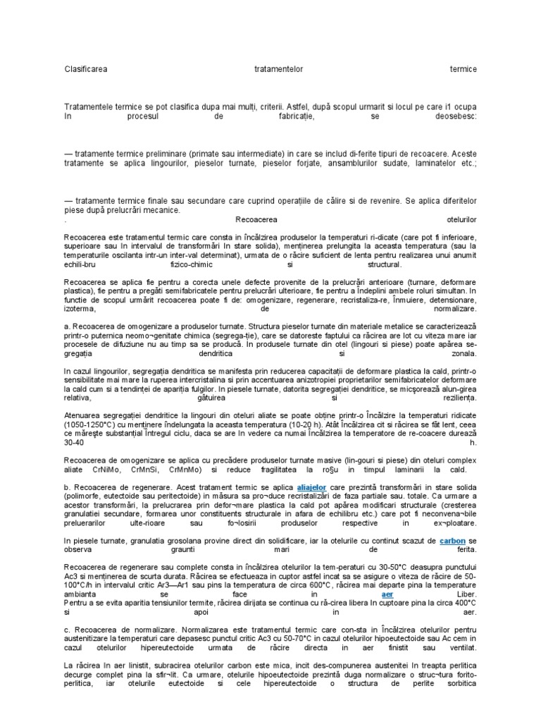 tratamente termice preliminare (primate sau intermediate) in care se includ di-ferite tipuri de recoacere. Aceste tratamente se aplica lingourilor, pieselor turnate, pieselor forjate, ansamblurilor sudate, laminatelor etc.;