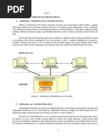 sau mai multor aplicaii. In aceast relaie, un program care poart denumirea de client, iniiaz o cerere informaionala ctre un alt program, denumit server, capabil s furnizeze printr-un pachet software rspunsul la cererea clientului Prin implementarea arhitecturii client-server se urmrete, n acest sens, conectarea tuturor aplicaiilor client la o singur baz de date ce joac rol de server de date, cu scopul de a obine un sistem integrat i uor accesibil care s permit partajarea informaiilor la nivel de ntreprindere. Dei cele dou tipuri de programe (client i server) pot lucra mpreun pe acelai calculator, beneficiile unei astfel de arhitecturi se pot obine cel mai bine n cadrul unei reele de calculatoare, permind o metod eficient de interconectare a programelor, distribuite n locaii diferite din cadrul reelei. Platforma hardware i sistemele de operare ale programelor client i server nu sunt identice. Datorit acestei eterogeniti a componentelor arhitecturale, procesele client i cele server trebuie s respecte un set bine definit de standarde i protocoale de comunicaie, n care se regsesc metodele de transmitere a informaiei i modul de utilizare a resurselor reelei locale de calculatoare n care sistemul client- server funcioneaz. Astfel, pentru standardizarea comunicrii dintre client i server cea mai des ntlnit metod de transmitere a informaiei n cadrul reelei este Standard Query Language (SQL). Tipologia sistemelor Client-Server Logica aplicaiei unei aplicaii cu baze de date vizeaz trei componenete: logica prezentrii (responsabil cu interfaa grafic expus utilizatorilor); logica procesrii (responsabil cu gestionarea i aplicarei tuturor regulilor legate de managementul i prelucrarea datelor); logica stocrii datelor (ce va gestiona pstrarea i extragerea datelor din cadrul dispozitivelor de stocare utilizate). n funcie de gruparea acestor componente pe nivele software sunt descrise mai multe subtipuri de arhitecturi client server, cele mai importante dintre fiind prezentate n continuare. Arhitectura client-server pe dou nivele (two tiers) Conform acestui tip arhitectural, interfaa cu utilizatorul este plasat pe calculatorul unde rezid programul client, iar serviciile legate de sistemul de gestiune a bazelor de date activeaz pe un calculator mult mai puternic, din punctul de vedere al capacitilor hardware i de procesare, care va furniza servicii mai multor clieni Datele sunt stocate i transferate de ctre server, apoi sunt afiate de ctre fiecare client prin interfaa cu utilizatorul. Acest tip de arhitectur funcioneaz n cazul sistemelor de mici dimensiuni (mai puin de 100 de