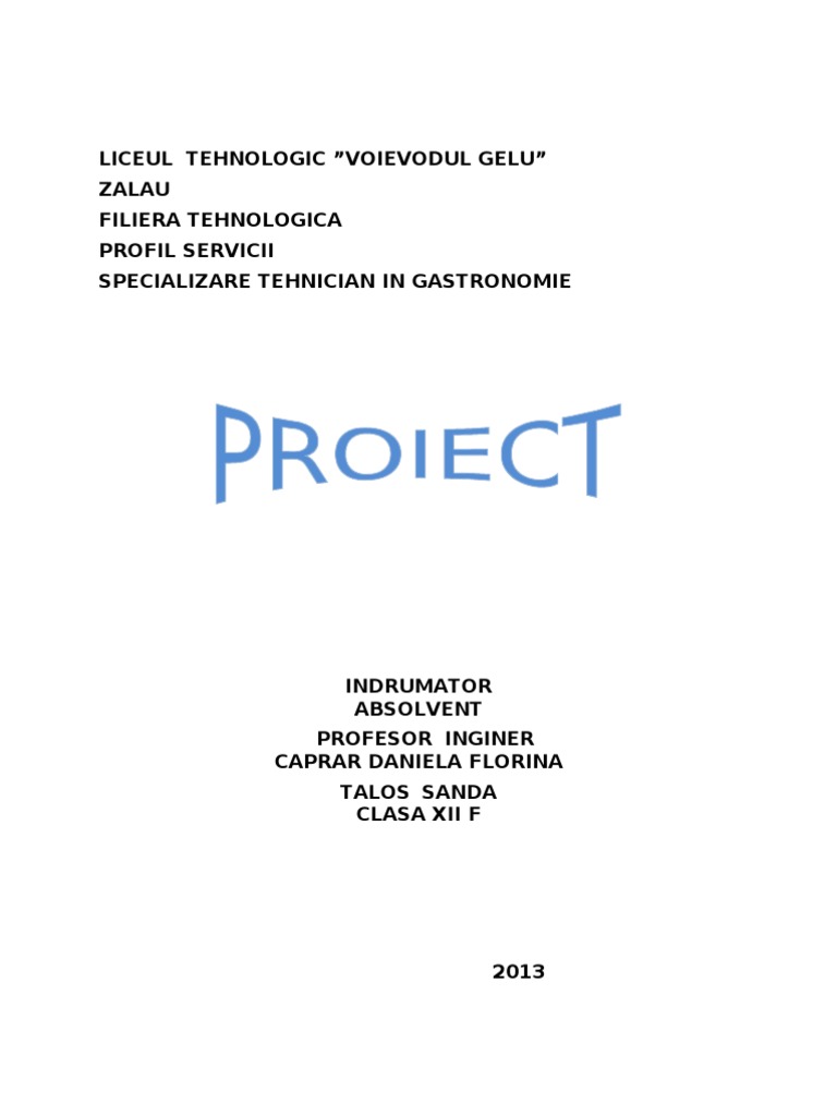 LICEUL TEHNOLOGIC VOIEVODUL GELU ZALAU FILIERA TEHNOLOGICA PROFIL SERVICII SPECIALIZARE TEHNICIAN IN GASTRONOMIE