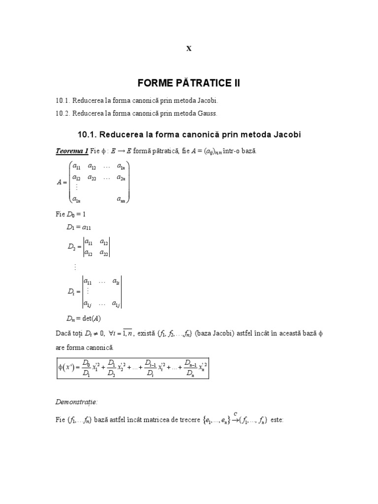 10.1. Reducerea la forma canonic prin metoda Jacobi
