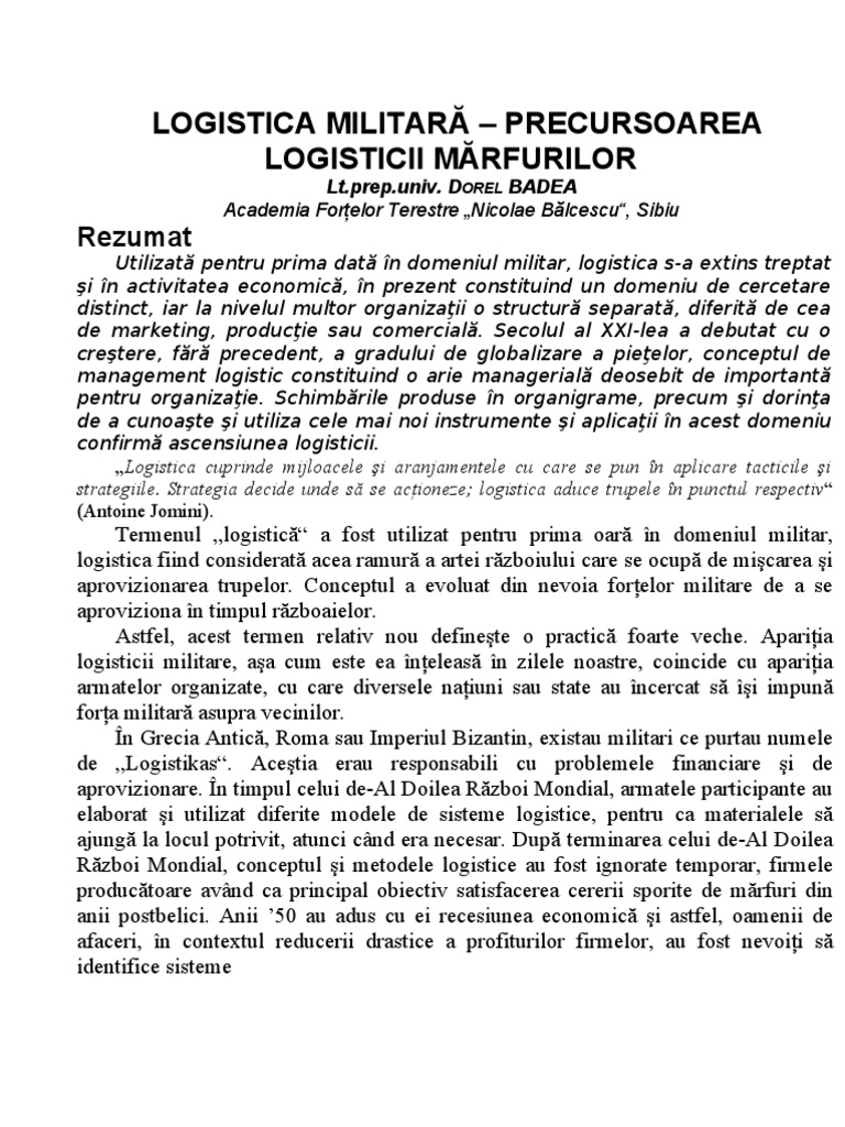 [Link]. DOREL BADEA Academia Forelor Terestre Nicolae Blcescu, Sibiu
