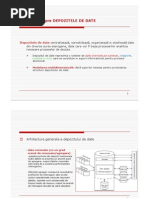 Sistemele de baze de date sunt o component esenial a vieii de zi cu zi n societatea [Link] cursul unei zile, majoritatea persoanelor desfasoara activitati care implica interaciunea cu o baza de date: depunerea sau extragerea unor sume de bani din banca, rezervarea biletelor de tren sau avion, cautarea unei referinte ntr-o biblioteca computerizata, cumpararea unor produse etc. Bazele de date pot avea dimensiuni (numar de inregistrari) extrem de variate, de la cateva zeci de nregistrari (de exemplu, baza de date pentru o agenda cu numere de telefon) sau pot ajunge la zeci de milioane de inregistrari (de exemplu, baza de date de plata pentru plata taxelor si a impozitelor). In sensul cel mai larg, o baza de date (database) este o colectie de date corelate din punct de vedere logic, care reflect un anumit aspect al lumii reale i este destinat unui anumit grup de utilizatori. n acest sens, bazele de date pot fi create i meninute manual (de exemplu, fiele de eviden a crilor dintr-o bibliotec, aa cum erau folosite cu ani n urm) sau computerizat, aa cum este majoritatea bazelor de date folosite n momentul de fa. O definiie ntr-un sens mai restrns a unei baze de date este urmtoarea: O baz de date (database) este o colecie de date creat i meninut computerizat, care permite operaii de introducere, tergere, actualizare i interogare a datelor.