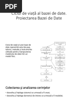 Universitatea Politehnica Bucuresti Facultatea de Electronica,Telecomunicatii si Tehnologia Informatiei 1.6. Testarea i validarea: noul sistem de baze de date este testat i validat ct mai riguros posibil. [Link]:sistemul de baze de date este pus la dispozitia utilizatorilor sai cu toate aplicatiile realizate in cadrul sistemului informatic al organizatiei. [Link] si intretinerea: pe tot parcursul etapei de operare sistemul de baze de date trebuie sa fie in mod permanent monitorizat si intretinut pentru a sigura consistenta si securitatea datelor si pentru a permite atat cresterea continutului de date cat si dezvoltarea de noi aplicatii [Link] fi necesare la anumite intervale de timp,revizii si reorganizari ale sistemului de baze de date. n general, se consider c etapa de proiectare a unei baze de date se pot diviza, la rndul ei, n mai multe faze : a. Proiectarea conceptual a bazei de date. b. Alegerea unui SGBD. [Link] logic a bazei de date. d. Proiectarea fizic a bazei de date. Cerinele de Cerinele de n mod tipic, dezvoltarea unei baze de date const din desfurarea a dou Colectarea i date prelucrare categorii de activiti paralele, aa cum se poate vedea n figura de mai jos: