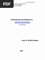 3.10 Probleme propuse spre rezolvare CAPITOLUL 4 RIDICRI PLANIMETRICE 4.1 Definiii i clasificri 4.2 Proiectarea reelelor de drumuire 4.3 Operaii de teren 4.4 Drumuirea planimetric sprijinit la capete pe puncte de coordonate cunoscute i laturi cu orientri cunoscute 4.5 Drumuirea planimetric sprijinit la capete problem rezolvat 4.6 Ridicarea planimetric a detaliilor 4.6.1 Metoda coordonatelor polare 4.6.2 Metoda coordonatelor rectangulare (terenuri cu panta mai mic de 5g) CAPITOLUL 5 NIVELMENT 5.1 Nivelment geometric 5.1.1 Nivelment geometric de mijloc 5.1.2 Nivelment geometric de capt 5.2 Metoda radierii de nivelment geometric de mijloc 5.2.1 Metoda cotei punctului de capt 5.2.2 Metoda cotei de la punct la punct 5.2.3 Metoda cotei planului de vizare 5.3 Nivelment trigonometric 5.4 Probleme rezolvate 5.5 Drumuirea de nivelment geometric de mijloc sprijinit la capete 5.6 Problem rezolvat - Drumuire de nivelment geometric sprijinit la capete 5.7 Probleme propuse spre rezolvare CAPITOLUL 6 METODE DE CALCUL A SUPARFEELOR CAPITOLUL 7 NIVELMENTUL SUPRAFEELOR BIBLIOGRAFIE