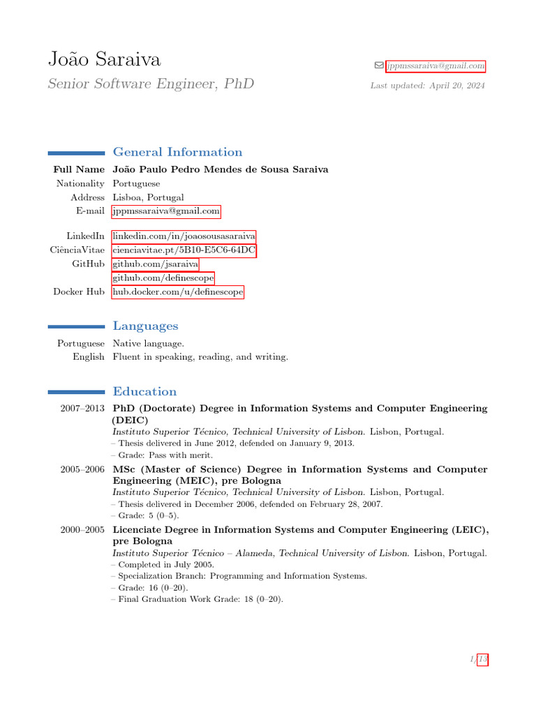 2007–2013 PhD (Doctorate) in Information Systems and Computer Engineering (DEIC).