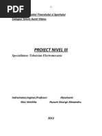 Amplitudinea semnalului sinusoidal este de 80100 mVrms, valoare suficient pentru cele mai multe aplicaii. Trebuie menionat c impedana la ieirile de semnal triunghiular i sinusoidal este de aproximativ 30 k. Din acest motiv, generatorul nu se va cupla la aparate cu intrri a cror im pedant este sub aceast valoare. Pentru a asigura o impedan de ieire mai mic, se poate aduga un separator realizat dup o schem clasic de repetor pe emitor. Generator de funcii cu circuit Integrate digitale (TTL) realizat cu circuitul integrat CDB400 (7400). Schema este foarte simpl i necesit puine piese; componenta principal circuitul integrat face parte din setul Generator de frecven audio", produs de [Link]. Acesta mpreun cu celelalte componente (comutator cu trei poziii, condensatoare i rezistene) pot fi procurate de la orice magazin de specialitate. nainte de a trece la descrierea generatorului, vom face o scurt prezentare a circuitului integrat CDB400. Este un circuit digital (logic), care opereaz deci cu niveluri logice la intrri i ieiri. In cele ce urmeaz, vom nota nivelul logic O, corespunztor celui mai sczut potenial, cu L (LOW), iar nivelul logic 1, corespunztor celui mai ridicat potenial, cu H (HIGH). Circuitul integrat este produs n capsul de plastic TO-116 cu 14 terminale; el conine patru operatori sau pori logice. Fiecare dintre cei patru operatori realizeaz funcia logic binar I-NU (NAND), care const in faptul c la ieirea unui operator va exista nivel H dac una sau amndou intrrile acestuia se afl conectate la nivel L. Dac amndou intrrile se afl la nivel H, ieirea se afl la nivel L. n ciuda simplitii funciei realizate, circuitul poate fi folosit pentru realizarea unor scheme simple i interesante, dup cum se va vedea mai jos. nainte de a trece la aplicaii, vom reaminti, pentru nceptori, cteva sfaturi pentru prevenirea distrugerii circuitelor integrate TTL: s nu depeasc tensiunea de alimentare de 5 V (max. 5,5 V); s nu se inverseze polaritatea sursei de alimentare; s nu se conecteze ieirile la plusul sursei de alimentare; s nu se aplice pe intrri tensiuni mai mari de 5,5 V sau sub -1 V, chiar dac circuitul integrat nu este alimentat.
