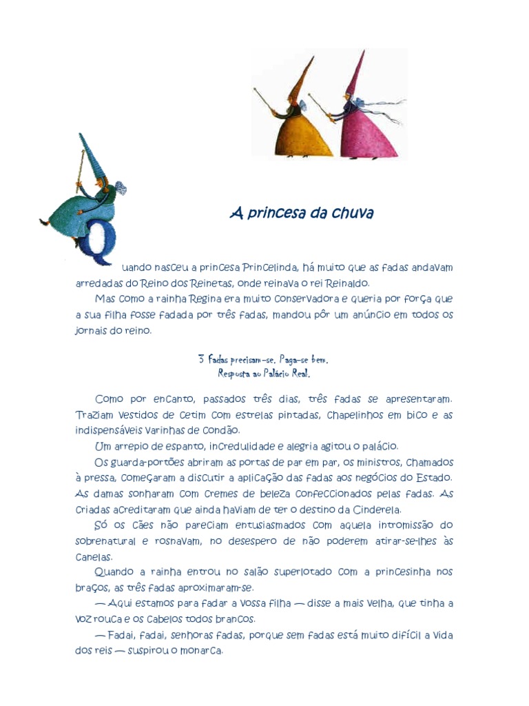 — Eu te fado — gritou ela — para que sejas a Princesa da Chuva, para que