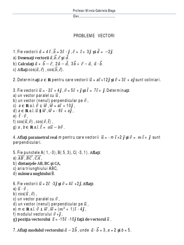 2. Determinai a pentru care vectorii u =at +12 i : =3t +a sunt coliniari.