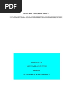 10) Auditul intern apreciaz i evalueaz calitatea controlului intern i permite mbuntirea acestuia 22. Care sunt obiectivele auditului public intern? Obiectivele auditului public intern, conform art. 3 din lege, sunt: a) asigurarea obiectiv i consilierea, destinate s mbunteasc sistemele i activitile entitii publice; b) sprijinirea ndeplinirii obiectivelor entitii publice printr-o abordare sistematic i metodic, prin care se evalueaz i se mbuntete eficacitatea Sistemului de conducere bazat pe gestiunea riscului, a controlului i a proceselor administrrii 23. Sfera de cuprindere a activitatilor de audit public intern? Sfera auditului public intern cuprinde: a) activitile financiare sau cu implicaii financiare desfurate de entitatea public din momentul constituirii angajamentelor pn Ia utilizarea fondurilor de ctre beneficiarii finali, inclusiv a fondurilor provenite din asisten extern; b) constituirea veniturilor publice, respectiv autorizarea i stabilirea titlurilor de crean, precum i a facilitilor acordate la ncasarea acestora; c) administrarea patrimoniului public, precum i vnzarea, gajarea, concesionarea sau nchirierea de bunuri din domeniul privat sau public al statului ori al unitilor administrativ-teritoriale; d) sistemele de management financiar i control, inclusiv contabilitatea i sistemele informatice aferente. [Link] punct de vedere strctural,cum este organizata activitatea de audit intern in Romania? Din punct de vedere structural, auditul intern este organizat astfel: a) Comitetul pentru Audit Public Intern (CAPI); b) Unitatea Central de Armonizare pentru Auditul Public Intern (UCAAPI); c) compartimentele de audit public intern din entitile publice. [Link] atributiile principale ale UCAPI de armonizare pentru auditul public intern elaboreaz, conduce i aplic o strategie unitar n domeniul auditului public intern i monitorizeaz la nivel naional aceast activitate dezvolt cadrul normativ dezvolt i implementeaz proceduri i metodologii uniforme, bazate pe standardele internaionale elaboreaz Codul privind conduita etic a auditorului intern; dezvolt sistemul de raportare a rezultatelor activitii de audit public intern efectueaz misiuni de audit public intern cu implicaii multisectoriale; verific respectarea normelor, instruciunilor coordoneaz sistemul de recrutare i de pregtire profesional n domeniul auditului public intern; avizeaz numirea sau destituirea efilor compartimentelor de audit public intern din entitile publice; coopereaz cu Curtea de Conturi i cu alte instituii i autoriti publice din Romnia; coopereaz cu autoritile i organizaiile de control financiar public din alte state [Link] este organizat compartimentul de audit intern? conductorul instituiei publice sau, n cazul altor entiti publice, organul de conducere colectiv are obligaia instituirii cadrului organizatoric i funcional necesar desfurrii activitii de audit public intern; la instuiile publice mici care nu sunt subordonate altor entiti publice, auditul public intern se limiteaz la auditul de regularitate i se efectueaz de ctre compartimentele de audit intern ale MFP; conductorul entitii publice subordonate, respectiv aflate n coordonarea sau sub autoritatea altei entiti publice, stabilete i menine un compartiment funcional de audit public intern, cu acordul entitii publice superioare; dac acest acord nu se d, auditul entitii respective se efectueaz de ctre compartimentul de audit public intern al entitii publice care a decis aceasta.