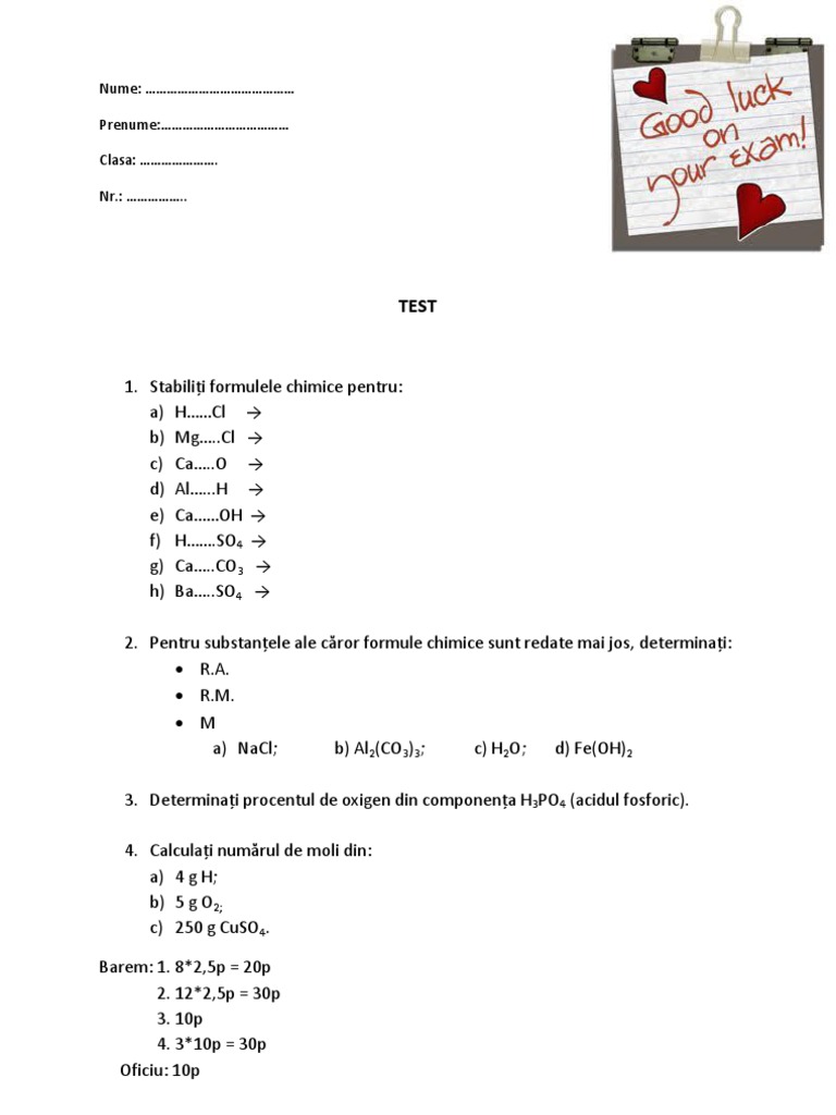 1. Stabilii formulele chimice pentru: