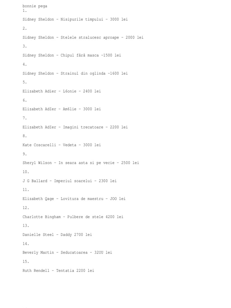 bonnie pega 1. Sidney Sheldon - Nisipurile timpului - 3000 lei 2.