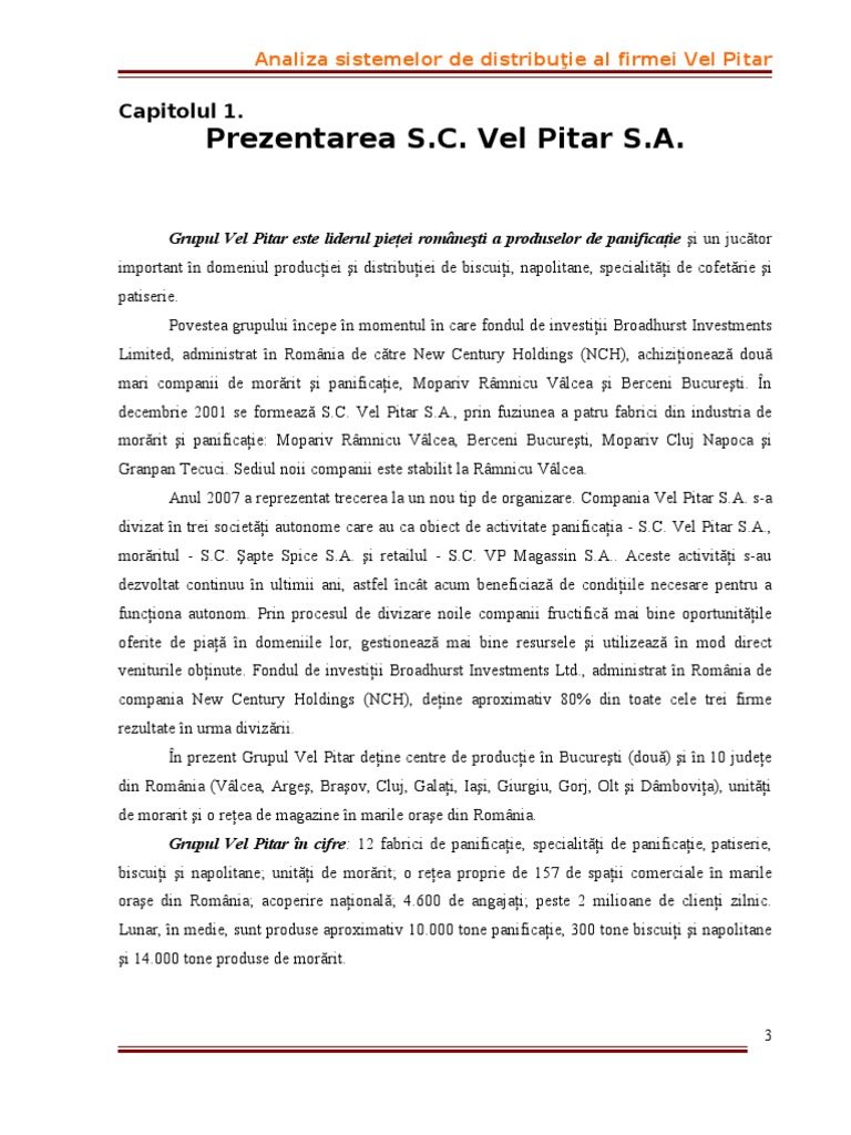 Analiza sistemelor de distribuie al firmei Vel Pitar