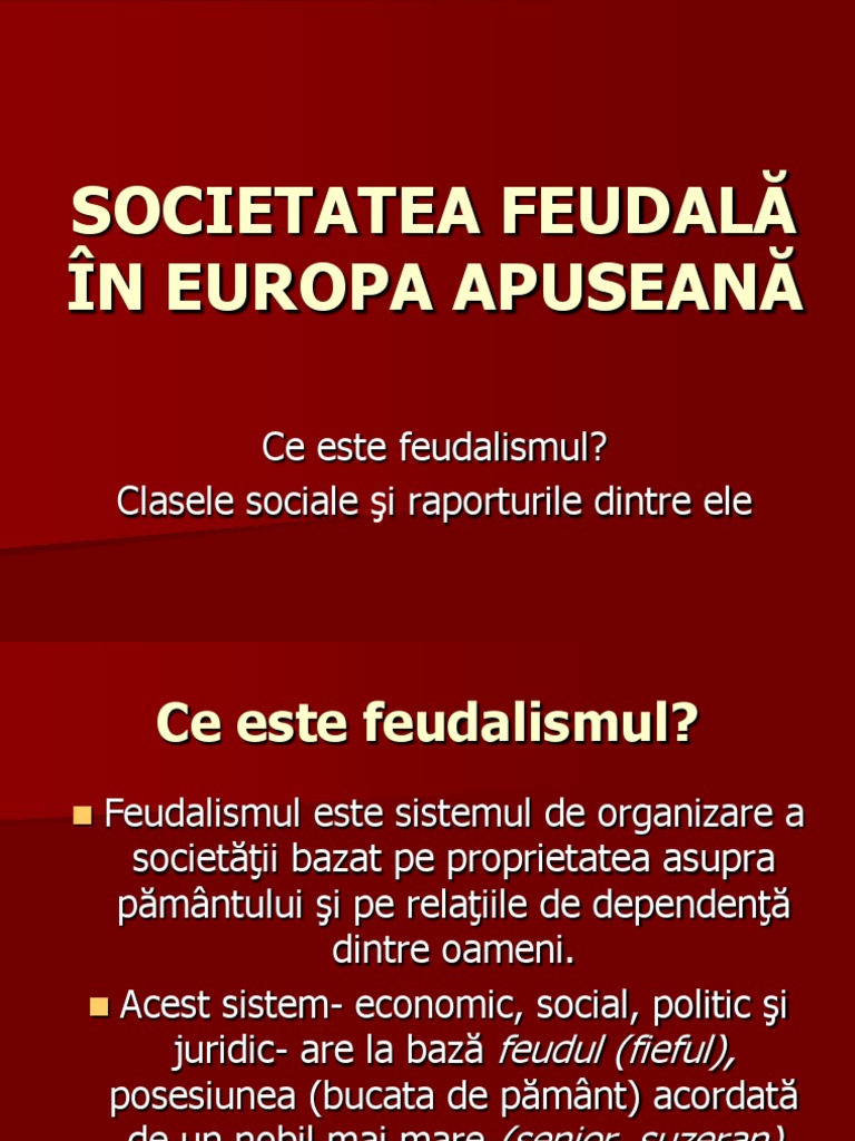 Ce este feudalismul? Clasele sociale i raporturile dintre ele