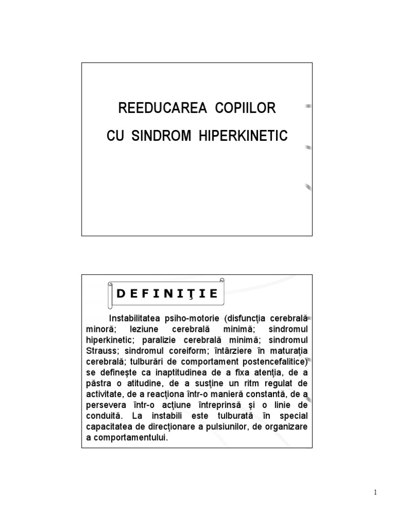 [Link] va explica prinilor natura bolii copilului. El va convinge prinii c unele din simptomele copilului sunt legate de structura intrinsec a acestuia, respectiv activitatea motorie, neatenia, personalitatea, tulburrile de autocontrol i tulburrile de percepie i cunoatere.