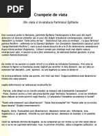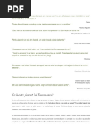 cenusie. Era o fire vesela si degaja un aer boem mostenit de la tatal ei pictor. Ridica mana incinsa de un ceas auriu cu cadranul modern, patrat, si isi pironi ochii pe secundar care arata clipa de clipa scurgerea timpului. Oh, daca ai putea opri timpul in loc, gandi ea. Se duse catre fereastra intredeschisa de unde se itea o lumina obscura in holul lung al cladirii si zari copacii ce erau goliti de frunze iar crengile jilave de burnita de toamna tarzie. La coltul strazii vazu un batran in straie ponosite care cerea mila trecatorilor. Letitia se intreba: - Pentru acest batran, oare, timpul conteaza? Il stia de cand venise cu recomandarea pentru angajare. Fata lui ridata cu niste ochi in care licarea o lumina speciala, umil si parca stingherit de situatia lui de a apela la bunavointa oamenilor, emana multa caldura. Tanara se cauta in buzunare pentru ceva maruntis cu un gest de milostenie, dar observa fata batranului care se ridica spre ea cu un aer care ii era familiar. Nu, nu era ca ceilalti, isi zise. Nu era de meserie cersetor. Gandul acesta avea sa ii persiste mult timp in minte. Batranul remarca miscarea fetei de uimire a Letitiei si isi lasa ochii in pamant rusinat de gandul citit din mintea fetei. Letitia scotocind precipitat prin buzunar nu stia ce sa mai faca, caci mai erau cativa pasi pana la batranul pe care vroia sa il cinsteasca cu cativa banuti si nu gasea nimic in buzunarul larg ca un burduf. Batranul cu ochii ageri schita un zambet larg ca si cum si-ar fi vazut o nepoata si ii spuse: - Lasa fata tatii, Domnul va sa vada gestul tau ! Mergi in pace !