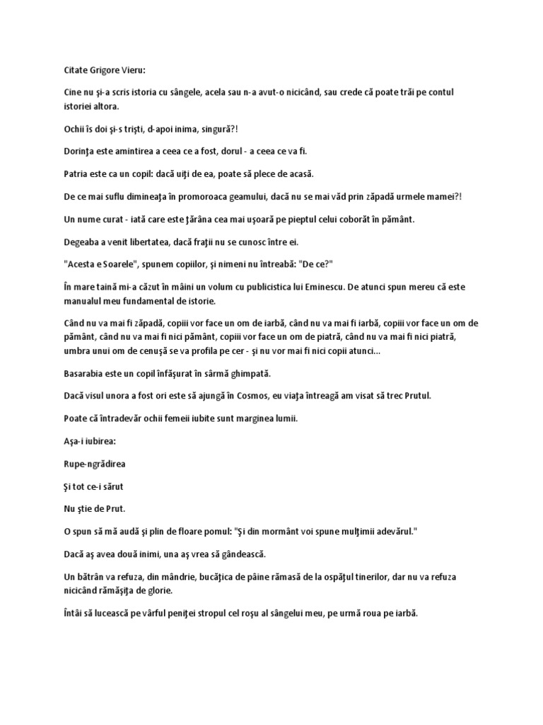 Citate Grigore Vieru: Cine nu i-a scris istoria cu sngele, acela sau n-a avut-o nicicnd, sau crede