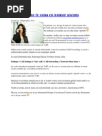*100#, alegi Servicii, Mesagerie Vocala si Dezactivare. In caz ca statusul este Inactiv dar cei care va apeleaza tot intra in casuta vocala, trebuie sa o activati si sa o dezactivati din nou. Dezactivare mesagerie/casuta vocala Cosmote: -Redirecionarea Apelurilor Cnd nu poi rspunde Activarea serviciului: Formeaz **61* numrul de telefon # Apas tasta de apelare Dezactivarea serviciului: Formeaz ## 61# Apas tasta de apelare Verificare status: Formeaz *# 61# Apas tasta de apelare Cnd telefonul tu sun ocupat Activarea serviciului: Formeaz **67* numrul de telefon # Apas tasta de apelare Dezactivarea serviciului: Formeaz ## 67# Apas tasta de apelare Verificare status: Formeaz *# 67# Apas tasta de apelare Cnd telefonul tu este nchis sau nu te afli n aria de acoperire Activarea serviciului: Formeaz **62* numrul de telefon # Apas tasta de apelare Dezactivarea serviciului: Formeaz ## 62# Apas tasta de apelare Verificare status: Formeaz *# 62# Apas tasta de apelare Necondiionat, pentru toate apelurile primite Activarea serviciului: Formeaz **21* numrul de telefon # Apas tasta de apelare Dezactivarea serviciului: Formeaz ## 21# Apas tasta de apelare
