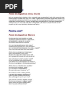 nscut, care oricum este evident, de multe ori, cu sau fr voie, se strecoar cuvinte care mustesc de grandoare i excelen, ncercnd s conving, sau s lmureasc cititorul, despre omul din spatele cuvntului oferit spre citire. Eu nu am aceste cuvinte, locul acesta va rmne gol, rmnnd ca voi, cititorii, dup ce ai citit cuvintele alese cu grij de mine din noianul de vorbe, s punei in sufletul vostru pe cele care credei c s-ar fi cuvenit s fie scrise aici. Dac unui singur cititor i place versul meu, merit s scriu pentru el.
