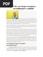 2. Acorda-i atentie. Pentru copii, atentia parintilor este esentiala, vitala, e lucrul cel mai de pret. Daca nu pot obtine atentia prin lucruri bune, unii vor incerca sa o primeasca prin tot felul de obraznicii. E mai bine ca parintele sa tipe la tine, sa te certe, sa se supere, decat sa nu te bage deloc in seama gandesc cei mici. Ai grija sa nu ii acorzi mai multa atentie atunci cand face cevagresit decat atunci cand face ceva bun si frumos. Lauda comportamentul pozitiv, chiar daca e vorba de lucruri marunte cum ca si-a spalat canuta sau si-a lasat pantofii la intrare. 3. Foloseste-te de reguli si de rutina. Creeaza un set de reguli pentru ca piciul tau sa stie exact ce astepti de la el si ce nu ar trebui sa faca niciodata. De exemplu, Toata lumea sta la masa pana cand se mananca tot din farfurie sau Hainele trebuie puse in dulap si nu aruncate la intamplare prin casa. 4. Rugamintile tale trebuie sa fie scurte si la obiect. Parintii se supara atunci cand copiii nu fac ce li s-a cerut. Si atunci, incep sa le tina predici lungi de jumatate de ora: Nu ti-am mai zis deja de trei ori pana acum de ce nu ma asculti niciodata de ce trebuie sa trecem iar prin asta macar o data vreau sa te vad si eu pe tine facand cutare lucru mai bine renunti la poliloghie si ii spui simplu: Ai intrat in casa cu pantofii murdari descalta-te, te rog. Reaminteste-i regula casei printr-o propozitie: Intodeauna ne descaltam inainte sa intram in casa. Si, eventual, mai adreseaza-i un indemn scurt: Haide, scoate-ti pantofii. Foarte posibil sa obtii rezultate mai bune cu o astfel de abordare. 5. Arata-i cum iti poate fi de ajutor. Cel mai des, copiii aud cuvinte negative de genul nu ai voie, nu acum, termina cu asta, gata. Problema cu aceste remarci e ca invata copiii ce sa NU faca, dar nu si ce asteptari ar avea parintii de la ei. Copiii chiar si-ar dori sa le fie de ajutor parintilor si sa primeasca laude si sa se simta apreciati ofera-le ocazia asta. De exemplu, in timp ce gatesti copilul vine si-si intinde jucariile pe jos in bucatarie. In loc sa-l certi si sa-i spui ca nu are voie sa se joace acolo, recomanda-i sa isi puna jucariile pe masa, ca tu sa iti poti face treaba si sa-l poti vedea si pe el cum se joaca. Un copil care rupe flori poate fi invatat cum sa rupa buruienile si sa ajute astfel florile frumoase sa aiba mai mult loc sa creasca. 6. Nu ceda la smiorcaieli. Altfel, copilul va sti ca parintele poate fi manipulat si va apela foarte des la acest truc. Invata-l ca esti dispusa sa ii asculti dorintele, dar doar daca si le exprima frumos, nu prin plansete. Si, din moment ce copilului ii ceri sa comunice in mod civilizat, ofera-i propriul tau exemplu si nu ridica vocea in timp ce ii vorbesti. 7. Asigura-l ca tu intodeauna vorbesti serios. Tine-te de cuvant intodeauna: daca il chemi pe copil la masa si el nu vine, du-te dupa el si ia-l de mana. Daca nu faci asta, se va obisnui sa vina mereu la masa abia dupa ce il chemi a cincea sau a saptea oara. 8. Copiii invata cel mai bine din consecinte si nu din predici. De exemplu, daca dimineata leneveste in pat si nu ajunge la timp la scoala, lasa-l sa intarzie la prima ora. Cel mai probabil, va fi certat de profesor si va invata lectia punctualitatii pe propria lui piele. 9. Fii un model pozitiv pentru copilul tau. Daca tu te porti frumos si politicos cu alti oameni, copilul iti va imita comportamentul. La fel, daca tu te plangi in fiecare zi ca trebuie sa faci curatenie si sa