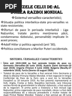 Perioada interbelica desemneaza intervalul de 21 de ani intre cele doua razboaie mondiale(1918-1939).A fost o perioada zbuciumata in care,in ciuda pacii aparente,conflictele erau in stare [Link] se concretizeaza cele doua ideologii opuse care au schimbat fata lumii:FASCISMUL,NAZISMUL in special si [Link] doua ideologii castiga tot mai mult teren pe fondul unei apatii generale din partea democratiilor europene. Benito Mussolini i Partidul Fascist au promis s refac statutul de mare putere european al Italiei prin crearea Noului Imperiu Roman. Mussolini a promis c Italia va deveni puterea dominant n Marea Mediteran. Propaganda fascist se folosea de anticul termen roman Mare Nostrum (n limba latin: Marea noastr) pentru descrierea Mediteranei. n 1935, Regatul Italiei se afla n culmea puterii i prestigiului internaional. Mussolini aliase Italia cu Frana i Anglia mpotriva unei eventuale agresiuni a Germaniei Naziste. Mussolini a crezut c aceast alian i va conferi un atu n plus n tentativa lui de ocupare a Etiopiei, pe care o dorea transformat n coloniei italian. Ca urmare a declanat al doilea rzboi italo-etiopian (cunoscut i ca al doilea rzboi italo-abisinian). n 1936, regimul fascist s-a implicat n Spania n cea mai important intervenie din perioada interbelic. A doua Reblic Spaniol era sfiat de rzboiul civil dintre republicanii anticlericali socialiti i naionalitii monarhiti sprijinii de biseric, condui de Francisco Franco i micarea lui fascist Falange Espaola. Italia a trimis avioane, arme i peste 60.000 de soldai n ajutorul naionalitilor spanioli. Dup anexarea Austriei n 1938, regimul fascist a nceput s fie preocupat de situaia Titolului de Sud, populat n majoritate de germani, care i-ar fi putut manifesta dorina de a se reuni cu Reichul. Fascitii erau preocupai de asemenea de implicaiile pe care le-ar fi avut implementarea politicilor antievreieti n schimbul ctigrii de favoruri din partea regimului nazist.