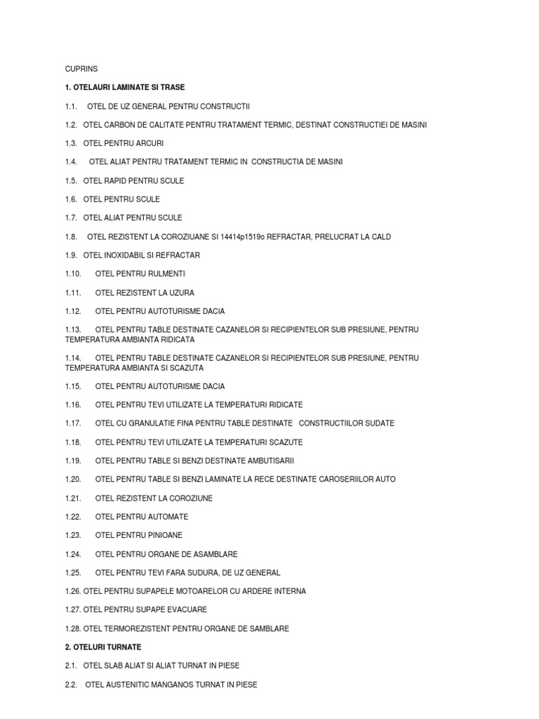 1.2. OTEL CARBON DE CALITATE PENTRU TRATAMENT TERMIC, DESTINAT CONSTRUCTIEI DE MASINI