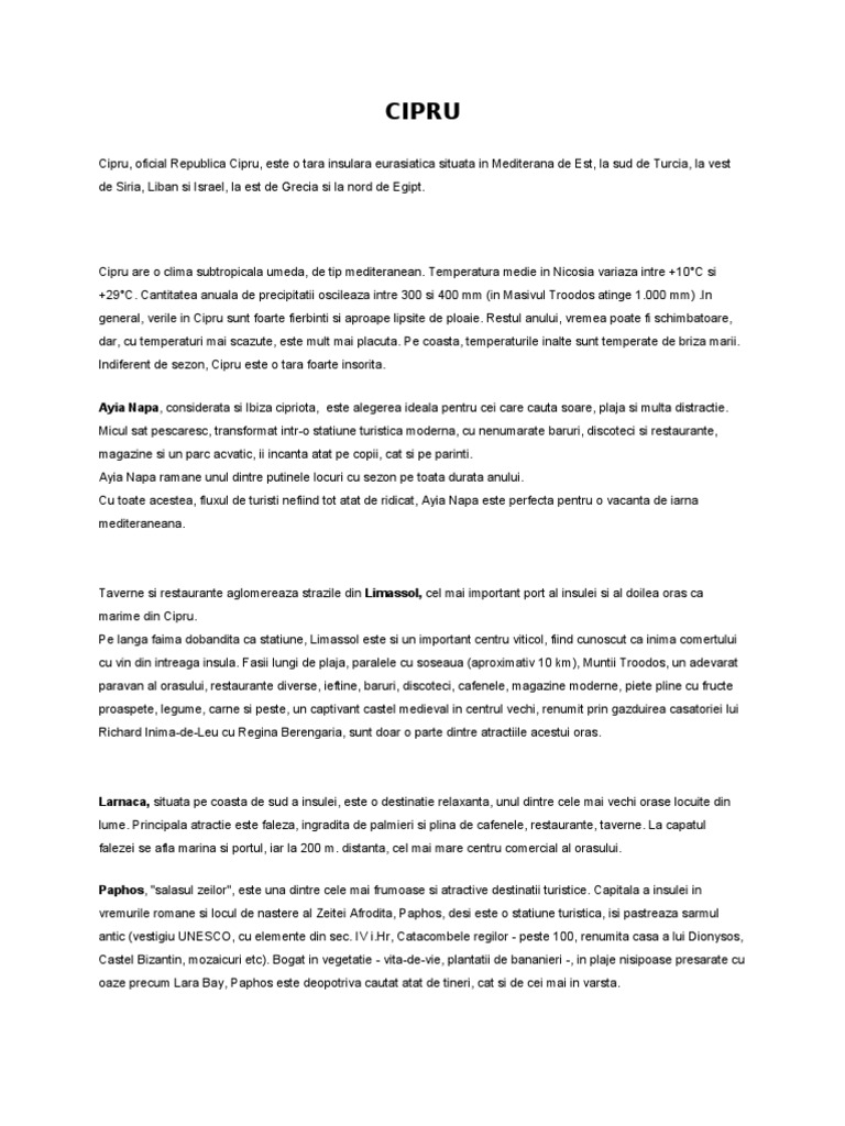 Cipru, oficial Republica Cipru, este o tara insulara eurasiatica situata in Mediterana de Est, la sud de Turcia, la vest de Siria, Liban si Israel, la est de Grecia si la nord de Egipt.