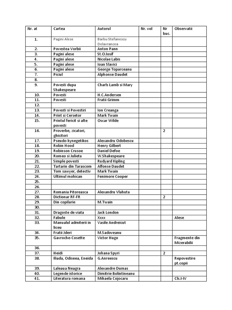 Jules Verne Jules Verne Jules Verne Jules Verne Jules Verne Jules Verne Jules Verne Miguel de Cervantes Cezar Petrescu George Cosbuc Victor Hugo William Shakespeare William Shakespeare [Link] [Link] [Link] George Cosbuc Mihai Eminescu Mihai Eminescu Vasile Alecsandri Vasile Alecsandri Vasile Alecsandri Vol.2 si vol.3 Vol.1 si vol.2