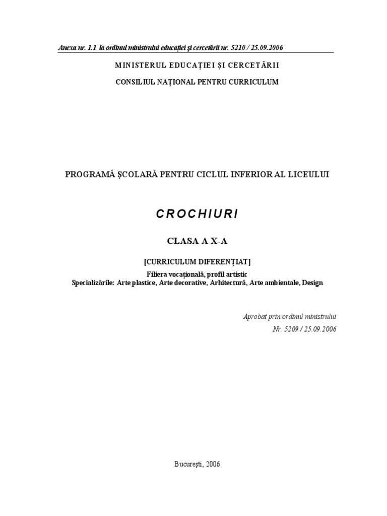 Crochiuri, clasa a X-a curriculum difereniat pentru filiera vocaional, profil artistic, specializrile: Arhitectur, Arte ambientale, Design