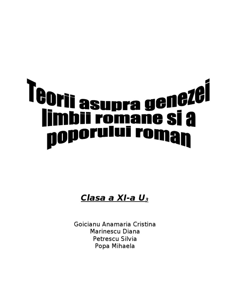 1. "Istoria limbii romane" Vol II,Editura academiei socialiste Romania Bucuresti 1969,[Link] redactor responsabil,paginile 1517,313,314,319,320,366,368,372-374. 2. Limba si literatura romana Manual pentru clasa a XI-a,Editura Corint,[Link] Simion,pg 14-16 3. Limba si literaturatura romana pentru elevii de liceu,manuale clasa a XI-a alternative,[Link] Badea,Editura BADEA &PROFESSIONAL CONSULTING 4. Istoria romanilor de Eugen Palade si Leonard Ilie, Editura:Grupul editorial Art 2007 pg.13-14 5. Istoria romanilor , autori C. Doinescu si A. Tudorica de la editura Grupul editorial Art din anul 2006, pg. 16-17 6. Limba si literatura romana, Manual pentru clasa a XIa, Editura All, autori Emil Ionescu si Victor Lisman pg.6-10 7. Structura si evolutia limbii romane (de la origini pana la 1860), autor- Ion Coteanu, Editura Academiei Republicii Socialiste Romania din anul 1981.
