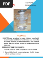 0,61 100 ; c = 10,16% 6 10. Se amestec 150 kg soluie de concentraie 20% cu 175 kg soluie de concentraie 5% i 200 g ap. Determin concentraia procentual a soluiei obinute. 11. Peste 2 kg soluie acid sulfuric de concentraie 20% se adaug 1 kg soluie de concentraie 15%. Calculeaz concentraia procentual a soluiei finale. 12. Ct ap trebuie ndeprtat prin evaporare din 300 g soluie de concentraie 25% pentru ca soluia s devin de concentraie 35%? Rezolvare: m s1 300 g md 1 md 2 c 1 = 25% c m m c1 25 300 ; md 1 75g d 1 ; md 1 1 s1 ; md 1 c 2 = 35 % 100 100 100 ms1 m apa =? g ap evaporat md 2 75g c