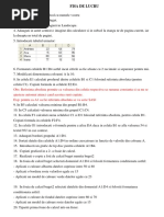 61. Sa se copieze continutul celulelor F2:F11 (valori) din foaia de calcul Note Chimie in celulele C2:C11 din foaia de calcul Medii. 62. Sa se salveze si sa se inchida registrul de calcul catalog1. 63. Sa se deschida registrul de calcul preturi produse. 64. In celula G4 sa se scrie o formula care sa calculeze pretul en gros al categoriei cascaval prin inmultirea pretului net cu adaosul comercial en gros pentru produsele alimentare. 65. Sa se copieze formula de calcul a pretului en gros din celula G4 in celulele corespunzatoare celorlalte produse alimentare. 66. Sa se copieze formula de calcul a pretului en gros din celula G4 in celula corespunzatoare pretului en detail. 67. Sa se copieze formula de calcul a pretului en detail din celula H4 in celulele corespunzatoare celorlalte produse alimentare. 68. Sa se modifice numele celulei B14 in TVA si folosind acest nume ca referinta absoluta, sa se calculeze in celulele I4:I10, preturile en detail ale produselor alimentare din lista, incluzand TVA. 69. Sa se salveze si sa se inchida registrul de calcul preturi produse. 70. Sa se deschida registrul de calcul diagrame. 71. In foaia de calcul Column sa se genereze o diagrama de tip Column pe baza datelor din celulele A1:D4. 72. In foaia de calcul Pie sa se genereze o diagrama de tip Pie pe baza datelor din celulele A1:B4. 73. In foaia de calcul XY (Scatter) sa se genereze o diagrama de tip XY (Scatter) pe baza datelor din celulele A1:B11. 74. Sa se modifice caracteristicile diagramei din foaia de calcul Pie astfel incat pe fiecare sectiune a diagramei sa fie indicata categoria la care se refera precum si valoarea corespunzatoare acesteia, in procente. 75. Sa se modifice caracteristicile diagramei din foaia de calcul XY (Scatter) astfel incat titlul acesteia sa fie y=f(x). 76. Sa se modifice caracteristicile diagramei a din foaia de calcul Column astfel incat culoarea de fond sa fie galbena. 77. Sa se modifice tipul diagramei din foaia de calcul Pie din Pie in Column.