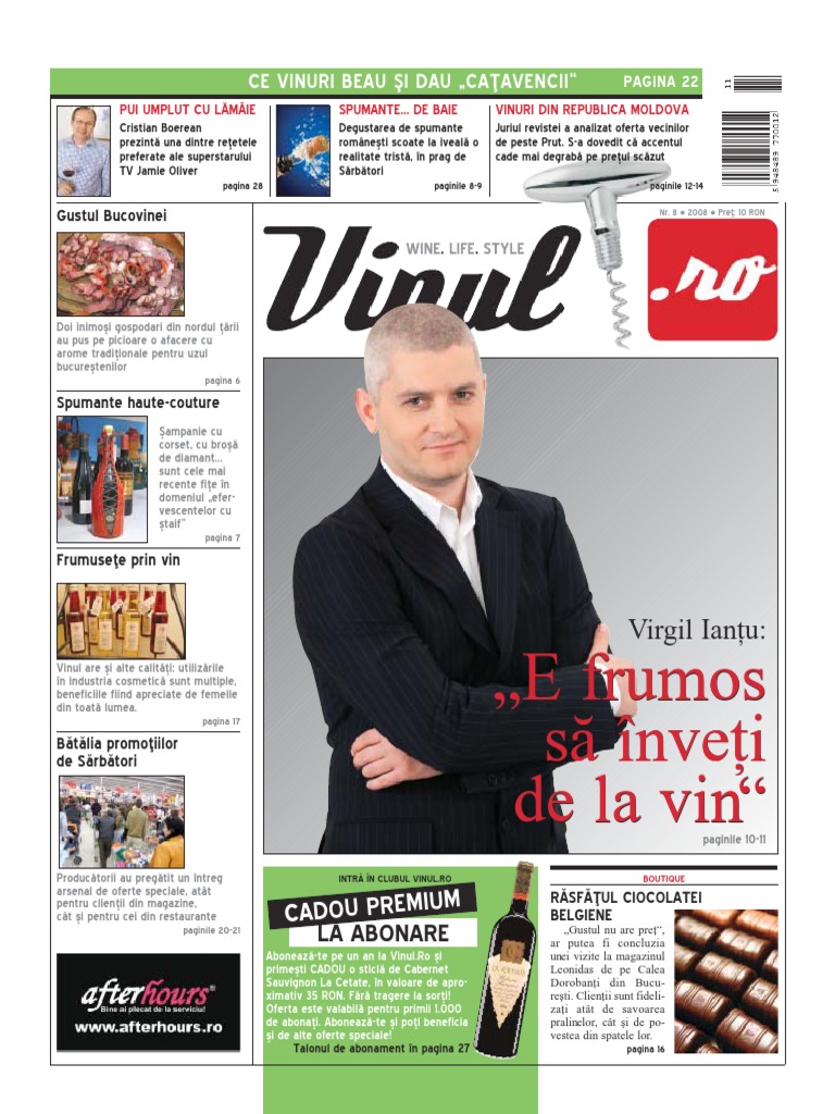 i n acest numr [Link] prezint cteva din recomandrile de vinuri fcute de ctre editorii publicaiilor internaionale de profil (Decanter, Wine Spectator i Jancis [Link]), precum i recomandrile redactorilor Forbes, The Walt Street Journal i TimesOnline.