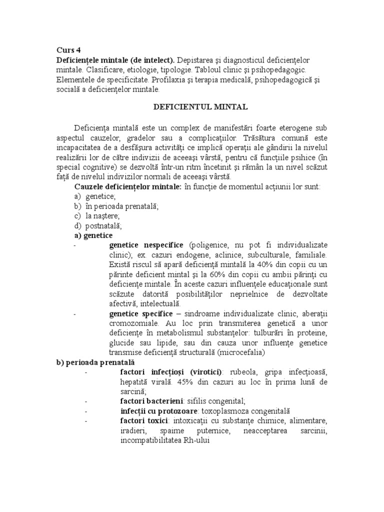 Deficienţele mintale (de intelect). Depistarea şi diagnosticul deficienţelor