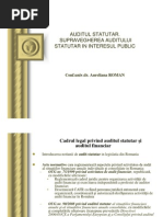 vederea exprimrii unei opinii motivate asupra regularitii, sinceritii i imaginii fidele a conturilor anuale ale ntreprinderii. Institutul American al Contabililor Publici Autorizai (AICPA) prezint auditul ca pe o examinare ordinar a situaiilor financiare, efectuat de un contabil public autorizat, n vederea exprimrii unei opinii cu privire la corectitudinea cu care aceste documente prezint situaia financiar, rezultatele operaiunilor efectuate i schimbrile intervenite n situaia financiar a organizaiei, n conformitate cu principiile contabile general acceptate (Standardul de Audit nr. 1). n Romnia, Ordonana de Urgen a Guvernului nr. 75/1999 privind activitatea de audit financiar (cu modificrile ulterioare)1 prezint auditul financiar ca activitatea de examinare, n vederea exprimrii de ctre auditorii financiari, a unei opinii asupra situaiilor financiare, n conformitate cu standardele de audit, armonizate cu standardele internaionale de audit i adoptate de Camera Auditorilor Financiari din Romnia. Exist, aadar, trei definiii date auditului financiar din care rzbate un filon comun, i anume c acesta reprezint o activitate de examinare a situaiilor financiare, de ctre o persoan competent sau autorizat (francezii nu au dat msura competenei), pentru formularea unei opinii asupra corectitudinii cu care aceste documente prezint situaia financiar a organizaiei, att static, ct i n dinamic. i pentru ca aceast opinie s fie motivat, se folosesc i reperele n funcie de care se fac aprecierile: principiile contabile general acceptate sau standardele de audit. n afara diferenelor stilistice date, probabil, de trsturile naionale (unii fiind mai riguroi n exprimare, iar alii mai lirici), transpare i o alt diferen: n Frana s-ar prea c aceast activitate este ncredinat comisarilor de conturi (persoane abilitate s efectueze controlul legal al conturilor societilor comerciale), n SUA numai contabilii publici autorizai pot s desfoare activiti de audit, iar n Romnia - auditorii financiari. Astfel, primele dou definiii vdesc apropierea dintre audit financiar i controlul contabil. n schimb, n a treia definiie apare o categorie distinct de specialiti, iar pentru a nelege la ce se refer aceast categorie este necesar analiza activitilor pe care acetia le pot desfura, prezentate n acelai act normativ: activitatea de audit financiar, de audit intern, de consultan financiar contabil i fiscal, de asigurare a managementului financiar contabil, de expertiz contabil, de evaluare, activiti de reorganizare judiciar i lichidare.