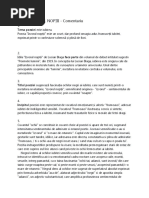 In continuare in propo#itiile a patra si a cincea eul liric reali#ea#a o descriere meta orica!*ste reluat cuvantul c$eie "oc$ii"carui acum sunt asociati substantivul comun "adancii"i#olat cu scopul de a accentua ca oc$ii sunt i#vorul intunericului!Intunericul i#vorat din oc$ii iubitei devine simbol al tainei existentei vietii!+adrul iubirii este cel nocturn care indeamna la meditatie!I#vorul ce se de#volta in oc$ii iubitei capata dimensiunile unui val imens ce acopera iinta indragostitilor,contopindu&i cu natura!%cestea reies din enumeratia si din repetitia "peste munti si peste vai"! %d)ectivele posesive la persoana I si a doua -imi,&ti,ta,[Link] ixea#a pe cei doi indragostiti intr&o stare de vra)a!Ultimul vers al acestei prime secvente o constituie meta ora"mare de intuneriec"ce ampli ica misterul nascut de vra)a iubirii! Lexicul acestei secvente este alcatuit din termeni ce apartin vocabularului undamental al limbii romane-oc$ii,seara,capul,i#vorul,vai,muntii.!Verbele au caracter static si pre#inta o realitate pre#enta-&s,stau,pare,sunt.!,inamismul este dat de singurul verb de miscare"curge"care sugerea#a eternitatea,curgerea vesnica! Partea a doua a poe#iei are valoarea unei conclu#ii!*a este ormata din ultimele doua versuri("%sa&s de negrii oc$ii tai/Lumina mea"!Versurile pun in evidenta oximoronul!Prin anularea opo#itiei noapte&lumina,lumina devine opica si noaptea e iluminata! 'ensul pro un al meta orei "oc$ii negrii"sugerea#a nemarginirea culorii oc$ilor!Poe#ia se inc$eie dupa cum a inceput cu o invocatie retorica"Lumina mea"! Poe#ia are o versi icatie moderna alba!0u#icalitatea poe#iei este in care autorul isi exprima ideile si reali#ata prin aliteratie si sentimentele!Versurile au masura inegala,nu sunt structurate in stro e iar rima este asonanta( rumoasa,seara,noaptea,poala! Prin caracteristicile pre#entate poe#ia "I#vorul noptii"de Lucian Blaga este o opera lirica!