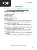H2 1,6 Dup Sigg .a., 1992, cit. de Popa, P. .a., 2001. Faza lichid. Solubilitatea oricrui lichid n ap depinde de natura acestuia (polaritatea) i de temperatur. Astfel, moleculele care conin grupri polare (OH-, SH-, NH2-) sunt deosebit de solubile n ap, iar alte lichide (hidrocarburi, uleiuri, grsimi etc.), care au molecule nepolare, sunt foarte puin solubile n ap(practic insolubile). O soluie devine saturat cnd conine cantitatea maxim de solut la o temperatur dat. Saturaia este o stare de echilibru supunndu-se legilor termodinamice ale echilibrului. Faza solid. Solubilitatea n ap a substanelor solide depinde de structura acestora (gruprile hidrofile sau hidrofobe). Legtura ntre moleculele de ap i moleculele substanei supuse hidratrii se face prin intermediul gruprii hidrofile (prezint o polaritate compatibil cu cea a apei). Legturile materiei supuse hidratrii sunt legturi chimice pure. n unele cazuri, solvatarea sau simpla umezire se produce prin intermediul unui al treilea constituent, numit: solvent pentru soluii adevrate; peptizant pentru soluii coloidale; stabilizant sau emulsionant pentru emulsii i suspensii; agent de nmuiere pentru aciunile superficiale de suprafa. n soluiile apoase, formate prin dizolvarea n ap a diferitelor substane, pot avea loc numeroase reacii, cele mai importante fiind reaciile biochimice din organismele vii. Hidraii reprezint combinaii ce se formeaz prin fixarea unei molecule de ap sau a mai multor molecule la un compus oarecare. n compusul anhidru prezena apei conduce la rearanjri atomice, n urma crora rezult un nou compus chimic cu structur cristalin. Deoarece apa poate fi reinut de un compus i prin fore mecanice sau fizico- chimice de absorbie, demonstrarea formrii hidratului este dat de faptul ca hidratul poate coexista mpreun cu produii si de deshidratare, ntr-un echilibru cu vaporii de ap, la o presiune fix. Exist trei mari categorii de hidrai: hidraii electroliilor, hidraii gazelor i hidraii compuilor din ioni de dimensiuni foarte mari (anioni sau anfioni macromoleculari). n funcie de rolul apei din hidrat, aceasta poate fi de mai multe feluri: Apa de constituie este apa la care moleculele sale numai au individualitate n cadrul hidratului, ele nu pot fi ndeprtate din compus dect la temperaturi de peste 100 oC, cu descompunerea produsului (distrugerea reelei cristaline) i formarea substanelor anhidre (care au o reea diferit de reeaua cristalin a hidratului). Apa de coordinaie este apa ale crei molecule formeaz legturi coordinative cu ionii pozitivi din soluie (apa doneaz ionilor Na+, Mg2+, Fe3+, care au orbitalii periferici liberi, perechile de electroni liberi). nconjurarea ionului cu molecule de ap (liganzi) se realizeaz aproape spontan, legturile formate sunt foarte tari (150-250 kcal/mol. Apa de coordinaie urmeaz reaciile ionului complex.