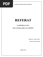 [Link] a va da precizari in legatura cu o crima care n-are egal in istoria ,ermaniei. # foarte mica clica de ofiteri prosti, ambitiosi, fara scrupule, si criminali... a urzit un complot pentru unlaturarea mea si nimicirea, totala a statului major al 0ehrmaert-ului. 6omba pusa de colonelul conte Claus von $tauffenberg a e)plodat la doi metri de mine. "u fost raniti cativa dintre fidelii mei colaboratori, dintre care unul a murit. *u insa sunt absolut nevatamat, cu e)ceptia catorva zgarieturi, contuzii sau arsuri. Consider acest fapt ca o confirmare a misiunii pe care mi-a dat-o providenta... Chiar in aceste momente in care armatele germane se gasesc angajate in cele mai grele lupte, cam ca si -talia, sa gasit in ,ermania un mic grup care credea ca poate sa le dea ca in 1918, o lovitura de pumnal pe la spate. (ar, de data aceasta s-au inselat amarnic... ,rupul pe care il constituie aceseti uzurpatori este e)trem de mic... *i vor fi e)terminati fara mila.8 Incepu o represiune sangeroasa. In spatele lui tauffen(erg se aflau cei mai deseama reprezentanti ai corpului de generali fascisti4 general-colonelul 3ec9, feldmaresalul <itzle(en, >iluge, generalii ;ster, @romm si altii, pe scurt, tocmai acei reprezentanti ai militarismului prusac despre care #itler spusese in momentul in care acaparase puterea4 8(aca n-ar fi fost ei, noi n-am fi fost acum aici. 8 tauffen(erg il c"ema la 3erlin pe tulpnogel si le anunta conspiratorilor de la +aris esecul. Inainte de a pune receptorul in furca, el a spus4 8/sigasii care vin sa ma rapuna sunt deja la usa mea8. .esi atentatul nu a reusit, e*plozia de la <olfssc"anze a luminat asemenea unui fulger profunda criza politica in care se afla Germania in urma loviturilor nimicitoare date de armata U1 -ului. Date ist$(ice martie 19$3 t-ul devine trosstrupp #itler 9 noiem(rie 19$5 #itler organizeaza -ul - ianuarie1933 lui #itler i s-a oferit titlul de cancelar al 1eic"ului - 1935 - 1937 #itler impreuna cu dictatorul Italiei, 3enito ,ussolini si dictatorul =aponiei inc"eie alianta 'B' 1;,'-3E1)I2-!;>I; la care adera si 1omania pe $3 noiem(rie 194%. 193& Germania ocupa 'ustria - septem(rie 193& prin acordul de la ,unc"en, Germania ocupa o parte din :e"oslovacia -zona udeta/, iar in martie 1939 o ocupa in intregime - 1 septem(rie 1939 conform planului 8G')3E28, Germania ataca +olonia6 'nglia si @ranta trimit un ultimatum prin care ii cerea lui #itler sa-si retraga armata din +olonia6 #itler respinge ultimatumul, asa ca pe 3 septem(rie 1939 'nglia si @ranta declara raz(oi Germaniei. In urma aceseti declaratii a iz(ucnit cel de-al doilea raz(oi mondial. - 1% iunie 194%, conform planului 8AE E18 #itler ataca 2orvegia si ocupa fiordurile