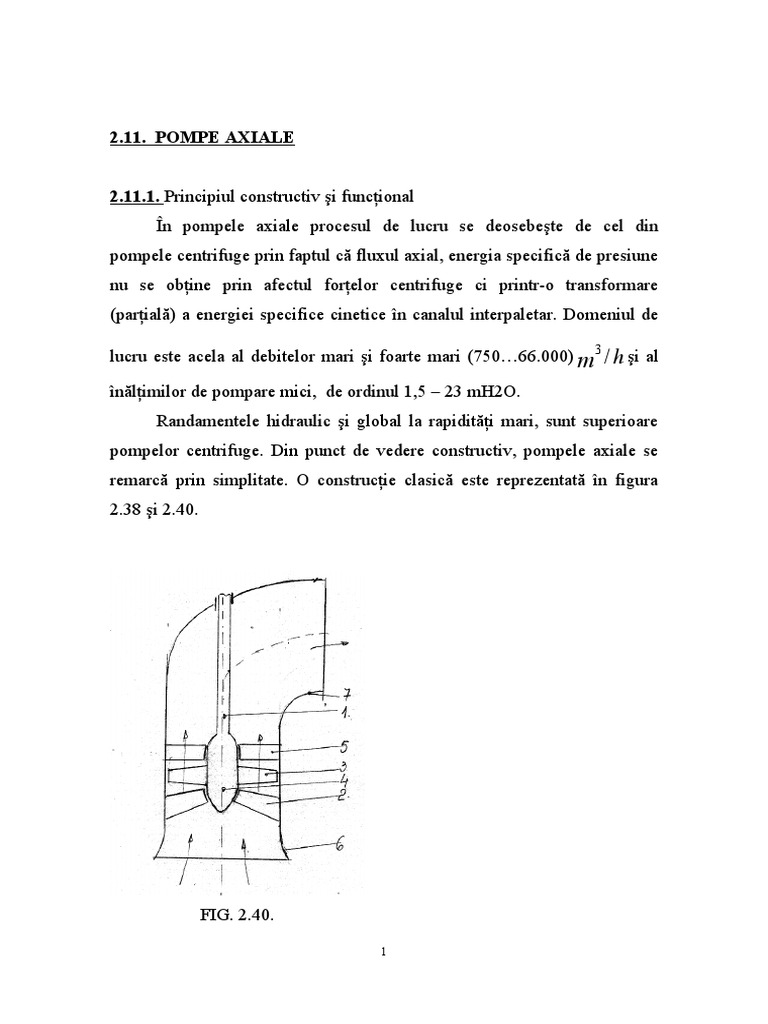 pompele centrifuge prin faptul c fluxul axial, energia specific de presiune