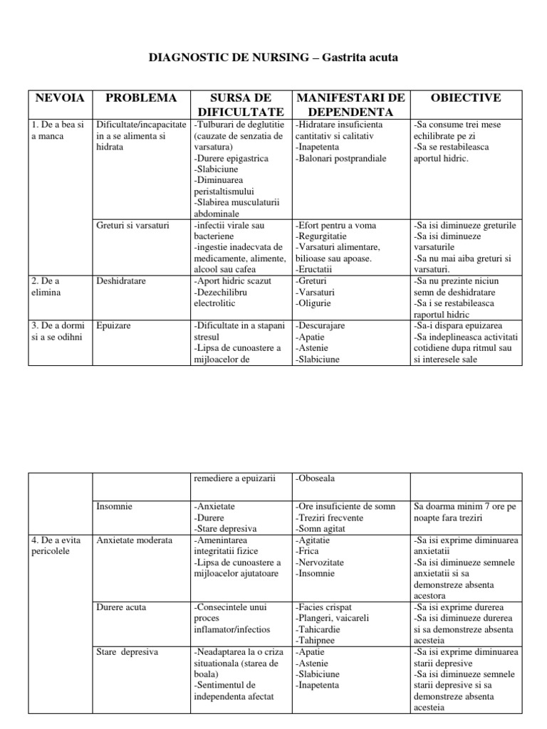 DIAGNOSTIC DE NURSING Gastrita acuta NEVOIA
