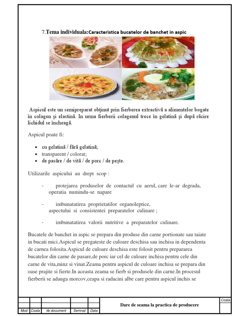 Tema individuala:Caracteristica bucatelor de banchet in aspic