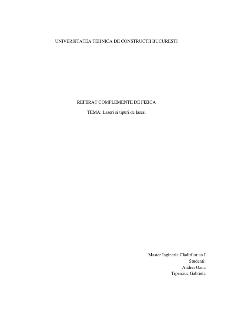 REFERAT COMPLEMENTE DE FIZICA TEMA: Laseri si tipuri de laseri