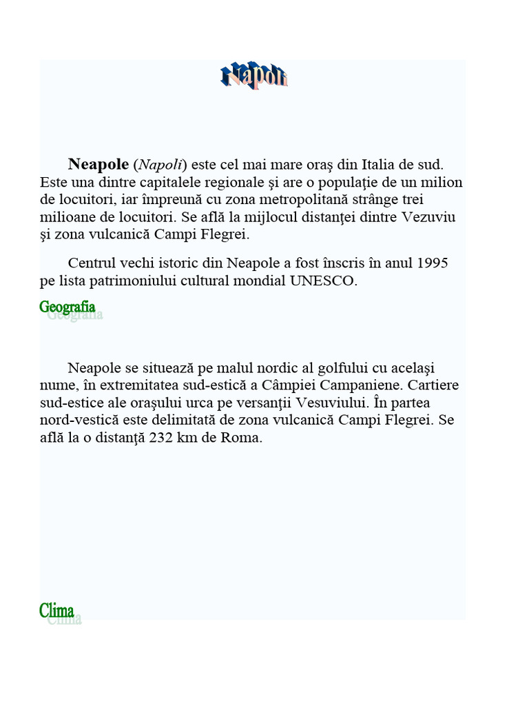 milioane de locuitori. Se află la mijlocul distanţei dintre Vezuviu