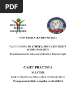Exercitiul 10: n eznd pe un scaun, spatele drept, realizm 10 rotaii ale capului spre partea stnga i apoi 10 n sens invers. LORDOZA este o deviatie a coloanei vertebrale cu convexitate anterioara, ce se manifesta prin exagerarea curburilor normale ale coloanei vertebrale, datorita tonusului crescut al musculaturii paravertebrale si slabirii tonusului muschilor [Link] persoanele de sex feminin o cauza favorizanta este purtarea incaltamintei cu tocuri inalte, ceea ce duce la inclinarea bazinului inainte si a trunchiului inapoi, determinand lordozarea. Lordoza este vizibil prezenta si la pacientii diagnosticati cu luxatie congenitala de sold bilaterala, la pacientii cu spondilolistezis si in adenopatii. Lordoza poate fi cauza algiilor lombare si sacrale, a oboselii la mers si sedere prelungita. EXERCITII PENTRU CORECTAREA LORDOZEI Din pozitia pe genunchi si sprijin pe palme , executa: Exercitiul 1: indoirea coatelor cu coborarea pieptului si ridicarea capului privirea inainte revenire ( de 8 ori ) ; Exercitiul 2 : indoirea coatelor cu ridicarea alternativa a unui picior intins inapoi revenire ( de 8 ori); Exercitiul 3 : ridicarea bratului si piciorului opus revenire ( de 8 10 ori) se repeta cu membrele de cealalta parte ; Din pozitiile stand sau sezand , exercitii cu bastonul tinut la ambele capete , executa : Exercitiul 1: cu bastonul tinut la spate de la capete , mers cu extensia bratelor si ducerea bastonului inapoi ; Exercitiul 2: din mers , exercitii de extensie a bratelor cu arcuire sus si lateral; Exercitiul 3: ducerea bastonului sus , cu arcuirea bratelor , privirea urmareste bastonul ( de 10 ori ) : Din pozitia decubit lateral , executa : Exercitiul 1 : ridicarea capului cu tendinta de a apropia urechea de umar ( valabil si pe stanga si pe dreapta ) de 8 10 ori ; Exercitiul 2: capul sprijinit pe bratul indoit se ridica capul contra rezistentei opuse de mana cealalta ( de 8 10 ori ).