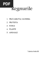 Cuprinde 35 de filumuri care reunesc peste un million de specii dintre care 95% sunt specii nevertebrate si 5 % vertebrate. Organismele animale au urmatoarele caracteristici : - Sunt pluricelulare, mai sunt denumite metazoare - Sunt heterotrofe si au ca substanta de rezerva glicogenul - Celulele sunt lipsite de perete cellular de natura celulozica - Au tesuturi diferentiate - Se reproduce sexuat - Stadiul diploid este dominant in existent lor Principalele filumuri ale regnului animal sunt 9 : porifera cnidaria platemintes nematelmintes molusca anelida artropoda echinoderma chordata.